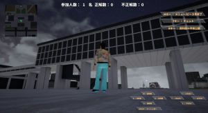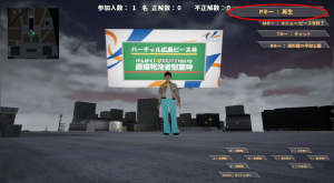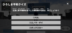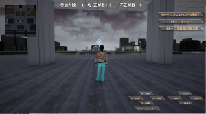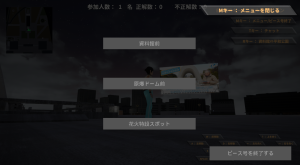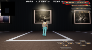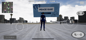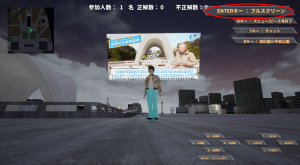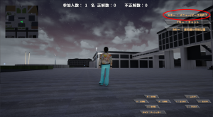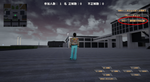 アイコンがある場所へ近づくとクイズスクリーンが出現しますので、クイズに答えるボタンをクリックしてください。クリックするとクイズ解答画面になりますので、正解だと思う答えを選択して回答してください。